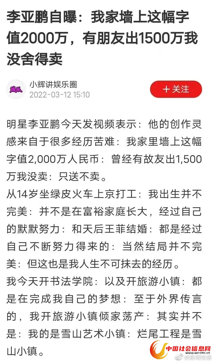 墙上的字值两千万,朋友出一千五百万他不卖。