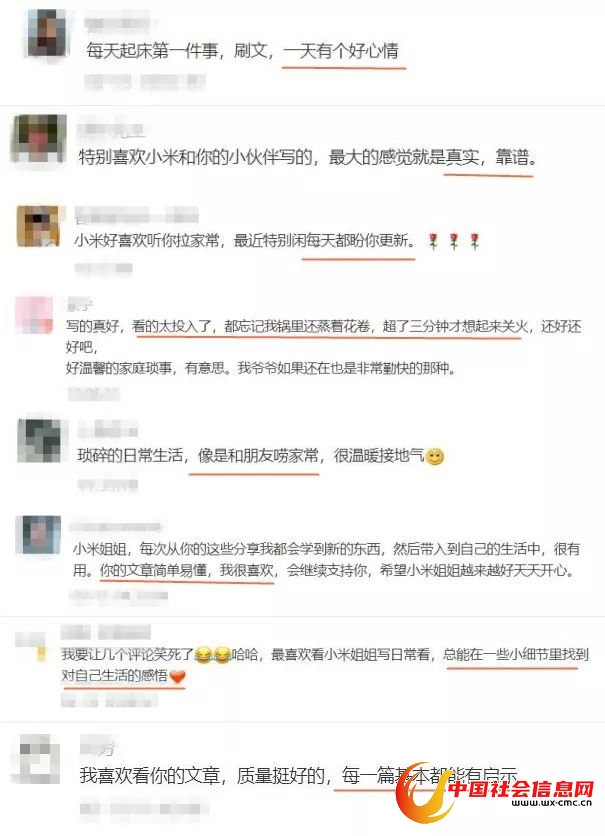 她创办了一个栏目,写老公的相处日常,分享自己的婚姻智慧,已经坚持更新了30多期,有读者说:学会了很多和老公相处的秘诀,后悔看到这系列文章太晚了;还有读者关注后熬夜读完,根本舍不得停下来……