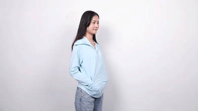 这款防晒呼吸衣的帽子设计,长度宽度都很适中,遮挡效果非常不错!
