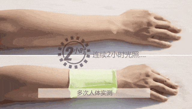 我们进行测试:一边手被紫外线暴晒2小时直接变成非洲黑,而盖着防晒呼吸衣的部分“完好无损”。