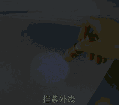 看,我们拿紫外线灯直接照射都能完全挡住!