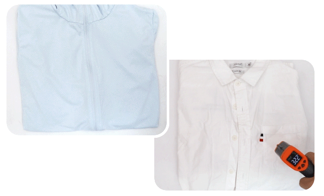 于是我们又在阳光底下测试:发现这款防晒呼吸衣的温度,居然比普通防晒衣低了11℃!▼