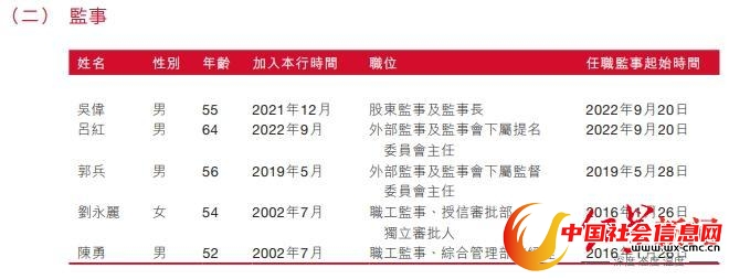 两名职工监事为陈勇、刘永丽,陈勇为综合管理部总经理,而刘永丽此前为风险管理部总经理,现为授信审批部独立审批人;两位外部监事郭兵、吕红,分别为律师和农业银行泸州分行退休职工。