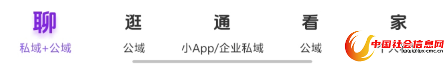 其中,虚拟形象所在的“家”为个人私域,拼低低所在的“通”为企业私域;而在此之外,还有“聊(私域+公域)”“逛(公域)”“看(公域)”等板块。