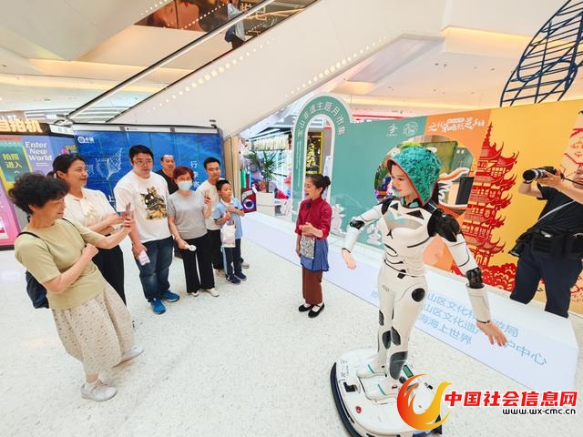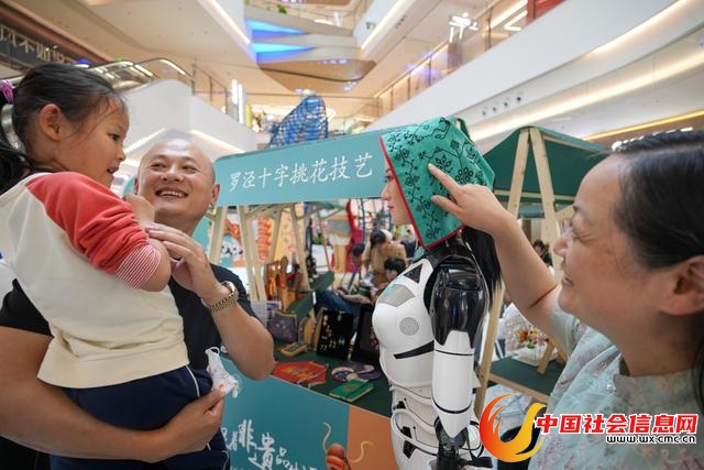 “你春风得意,喜讯高照。”6月13日下午,一段吴侬软语的沪剧唱段,拉开宝山“跟着非遗品生活”主题市集活动的序幕。令人惊喜的是,这个节目不单由宝山沪剧团小演员阮嘉苓的现场演绎,更有人型智能机器人“清宝”的“热情加盟”,“清宝”身穿罗泾十字挑花的传统服饰,不仅为沪剧演出伴奏“起舞”,还主动向市民朋友娓娓道来宝山非物质文化遗产的前世今生,当传统文化与数字科技相遇融合,让大家连呼过瘾。