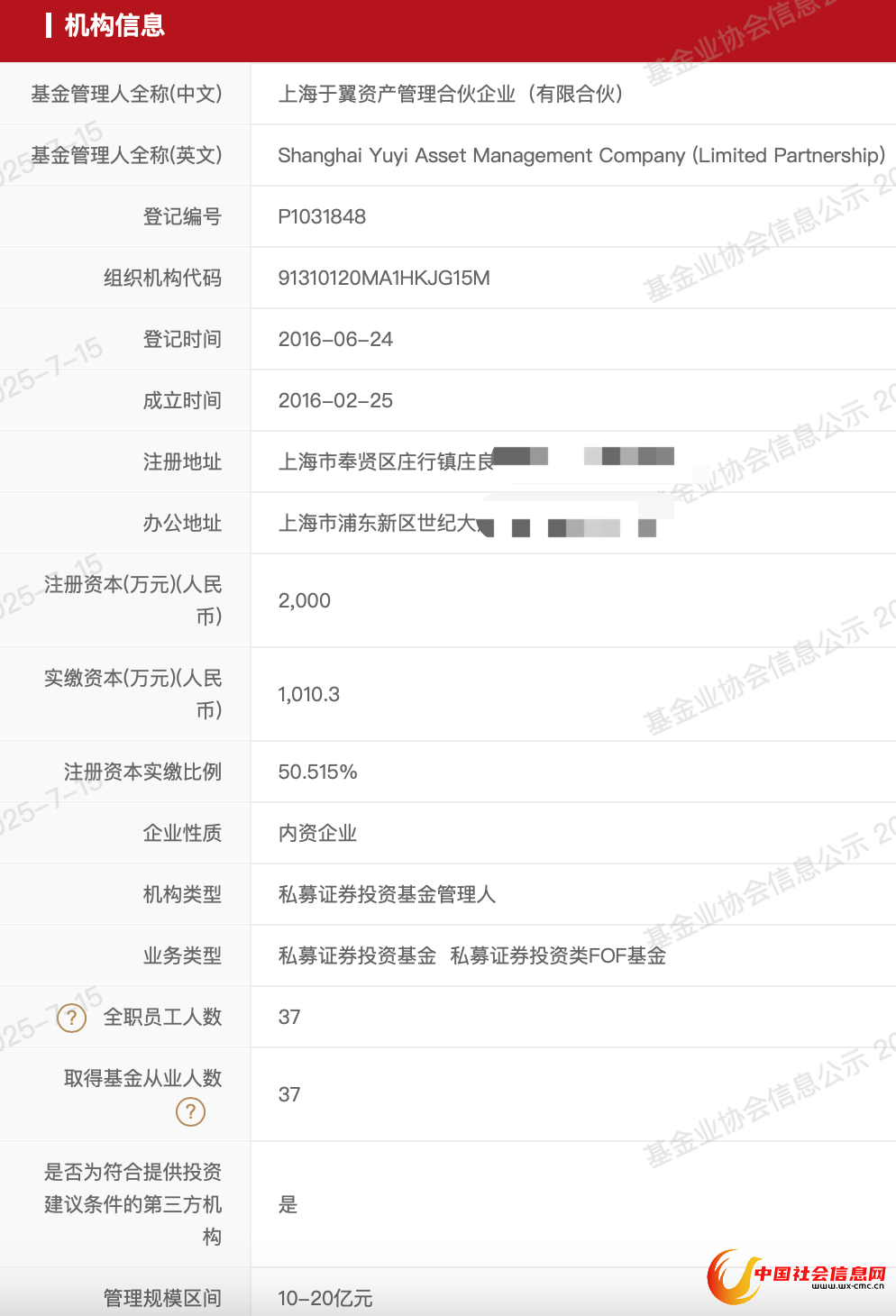 基金业协会网站最新信息显示,目前于翼资产旗下正在运作的私募基金产品有23只,最新管理规模在10亿元至20亿元区间。