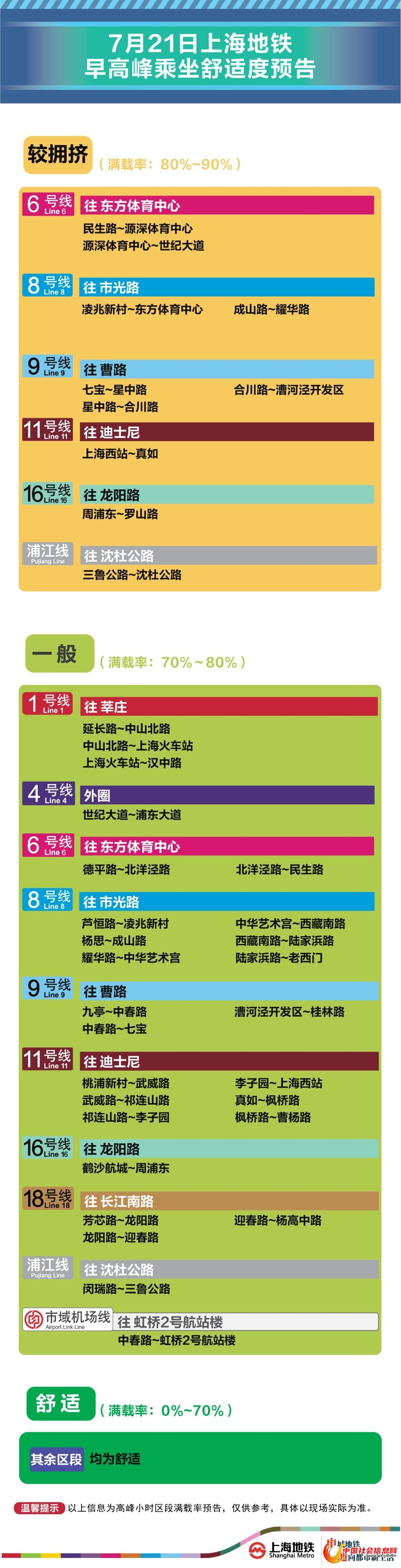 为提升上海地铁早高峰期间出行服务水平,提升乘客乘坐体验,上海地铁向乘客提供乘坐舒适度预告,方便乘客提 前做好出行准备。