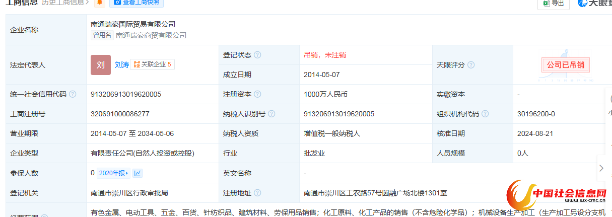 另外,上述提及的南通瑞豪,天眼查APP显示,该公司已于2024年8月21日被吊销。此前有媒体前往南通瑞豪注册地址,但该地址并无办公迹象。