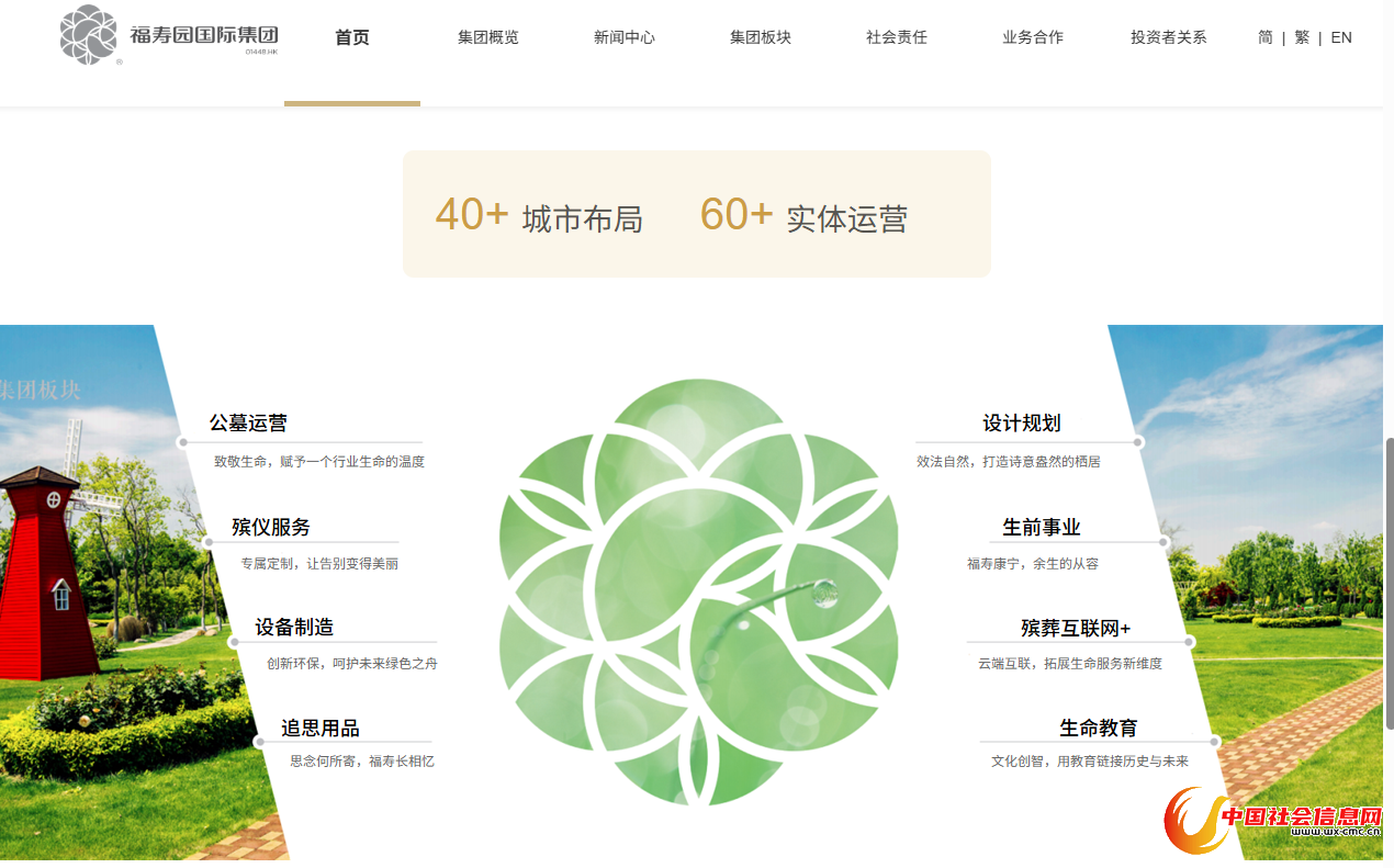 福寿园官网显示,其涵盖公墓运营、殡仪服务、追思用品、殡葬互联网+等板块业务,业务覆盖19个省、自治区、直辖市的四十余个城市。