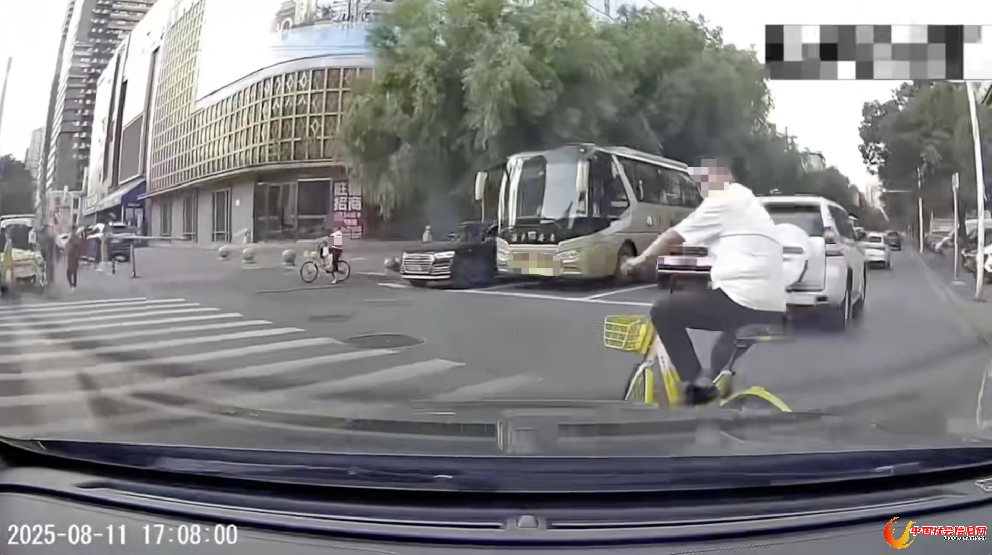 此前,一段网传带有时间戳、疑为行车记录仪拍摄的视频显示,8月11日17时07分52秒,视频车辆在建设大路与振工街路口右侧车道行驶,准备右转,当时左侧直行车道为绿灯。17时07分56秒,车辆开始转向;17时07分59秒,出现一辆骑黄色自行车的男子横过马路,阻碍机动车行进路线,此时,建设大路直行车道依然为绿灯,斑马线的绿灯则熄灭。网传视频显示,该骑行男子未让行机动车,机动车有减速动作;17时08分02秒,骑行者径直骑过马路。