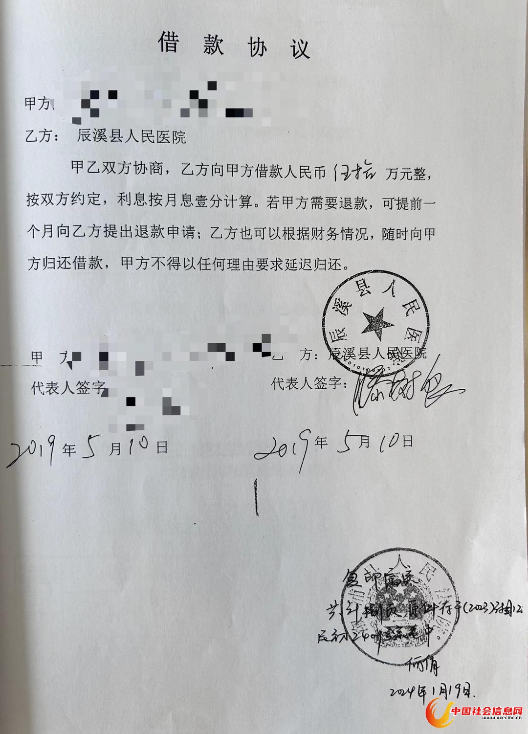 辰溪县人民医院与债权人签的借款协议