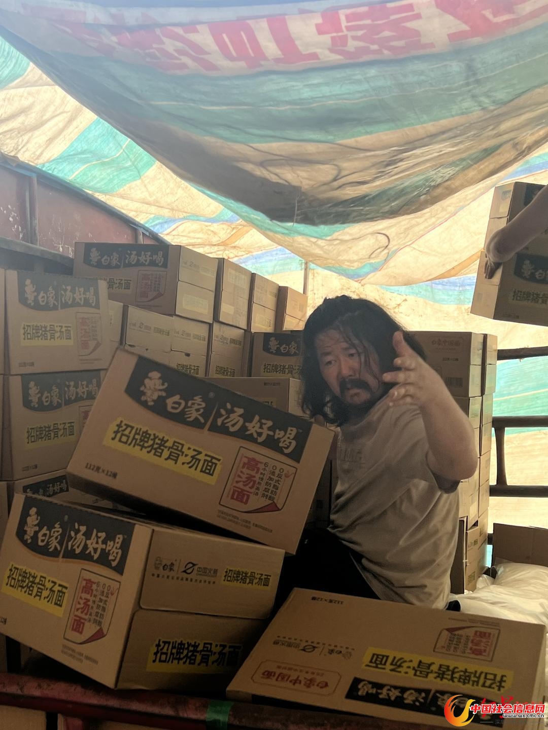 红星新闻记者见到胡雷时,他穿着一件被汗水打湿的棕色短袖,正在往货车上搬方便面,手里还拿着刚取出来的2万元现金,准备再买些物资。他告诉记者,他花费了近5万元购买了500件矿泉水、500箱方便面、2000多双手套以及1万斤大米,将同朋友购买的其他物资一起,从成都运往榕江。