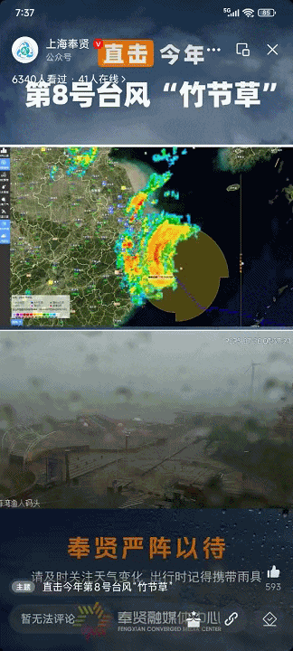 后续,“上海奉贤”微信公众号持续关注台风最新情况,通过24小时不间断“上海奉贤慢直播”,以及接下来将陆续推出的台风直播活动专场,使市民可实时、直观地了解台风路径、风雨强度等信息。