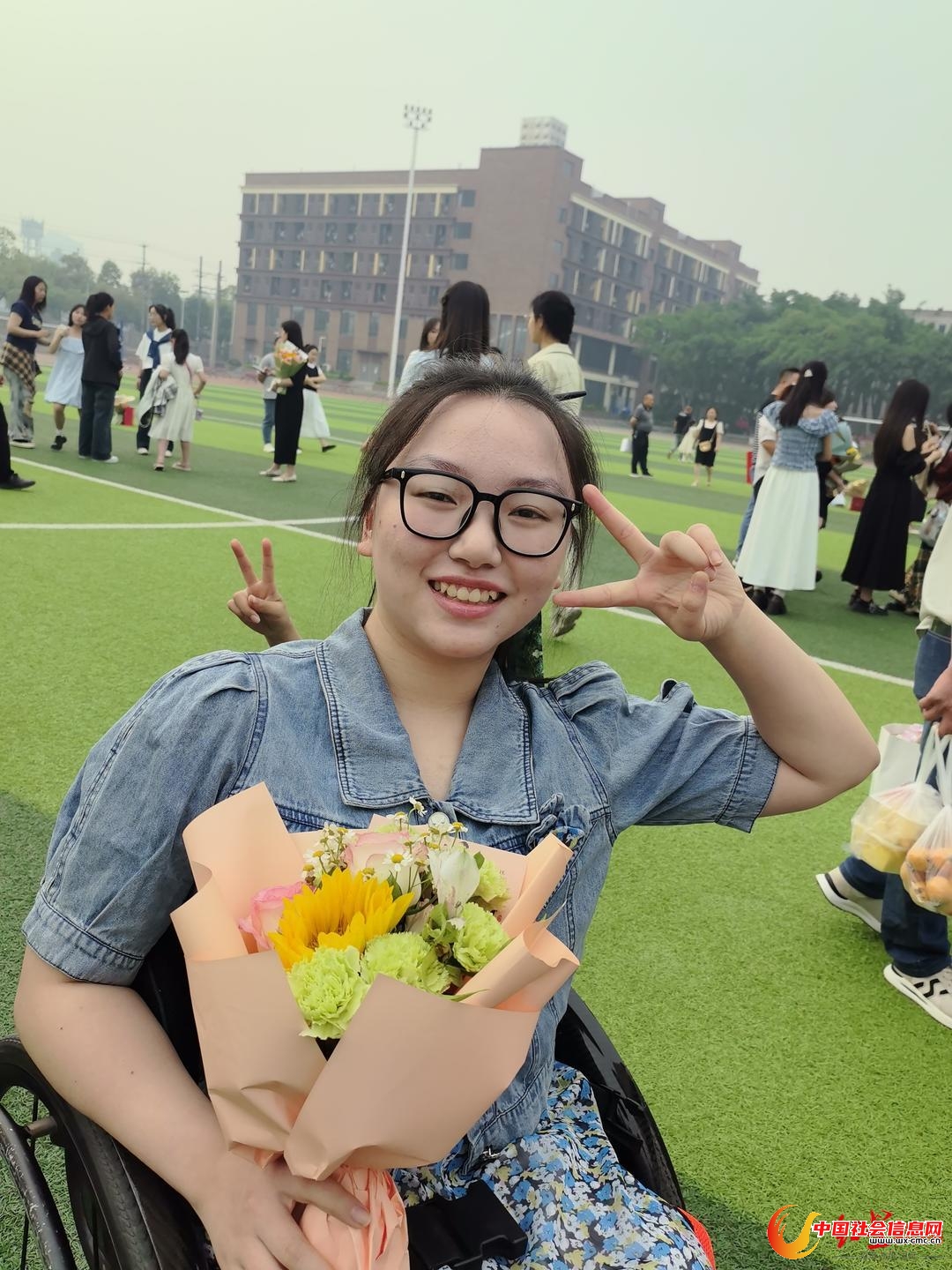从那以后,坐着轮椅做操,坐着轮椅奔跑,便成了校园里一道亮丽的风景。