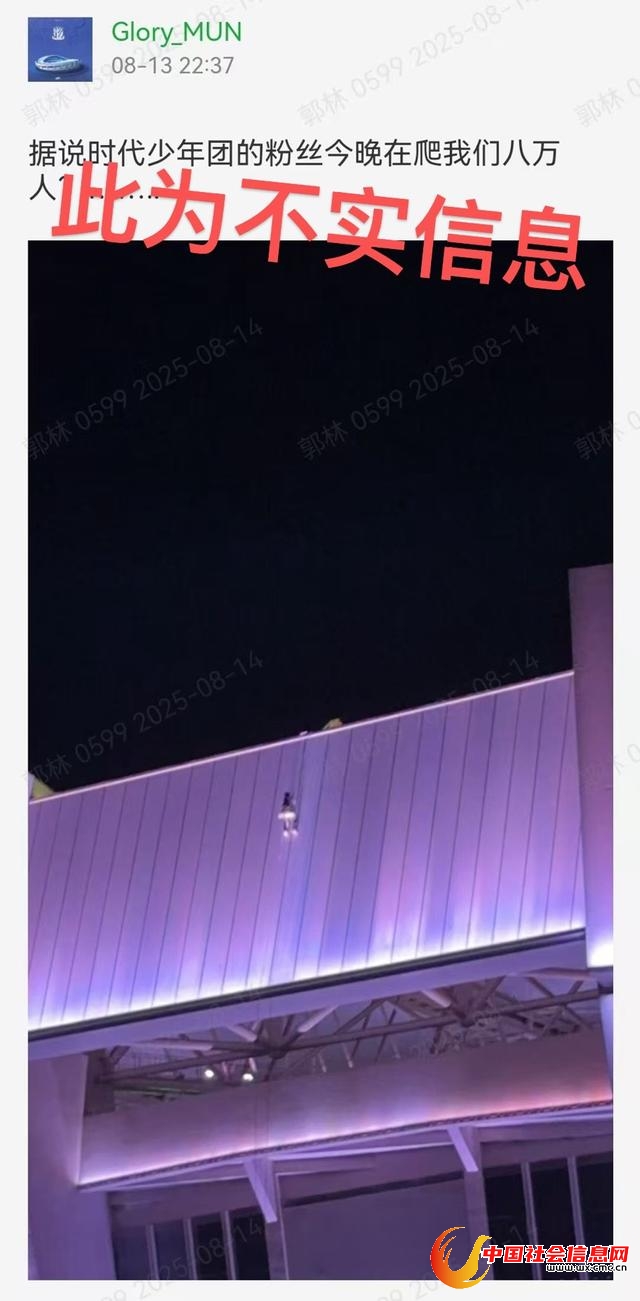 而发布上述信息的网友“GLory_MUN”看到网络图片后,在未经证实的情况下,将之与时代少年团上海演唱会这一热门话题相关联,为博眼球而发布不实信息。目前,该网友已被依法行政处罚。