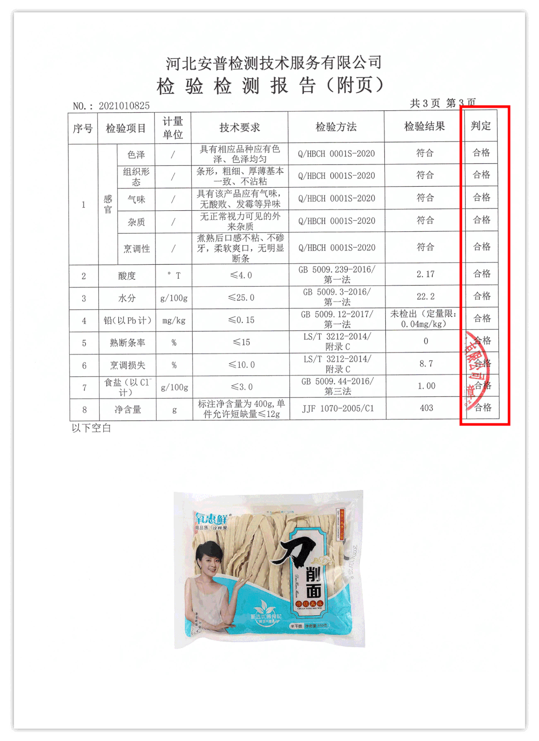 鲜面内芯,既保留了营养,又保留了鲜切面的新鲜口感。