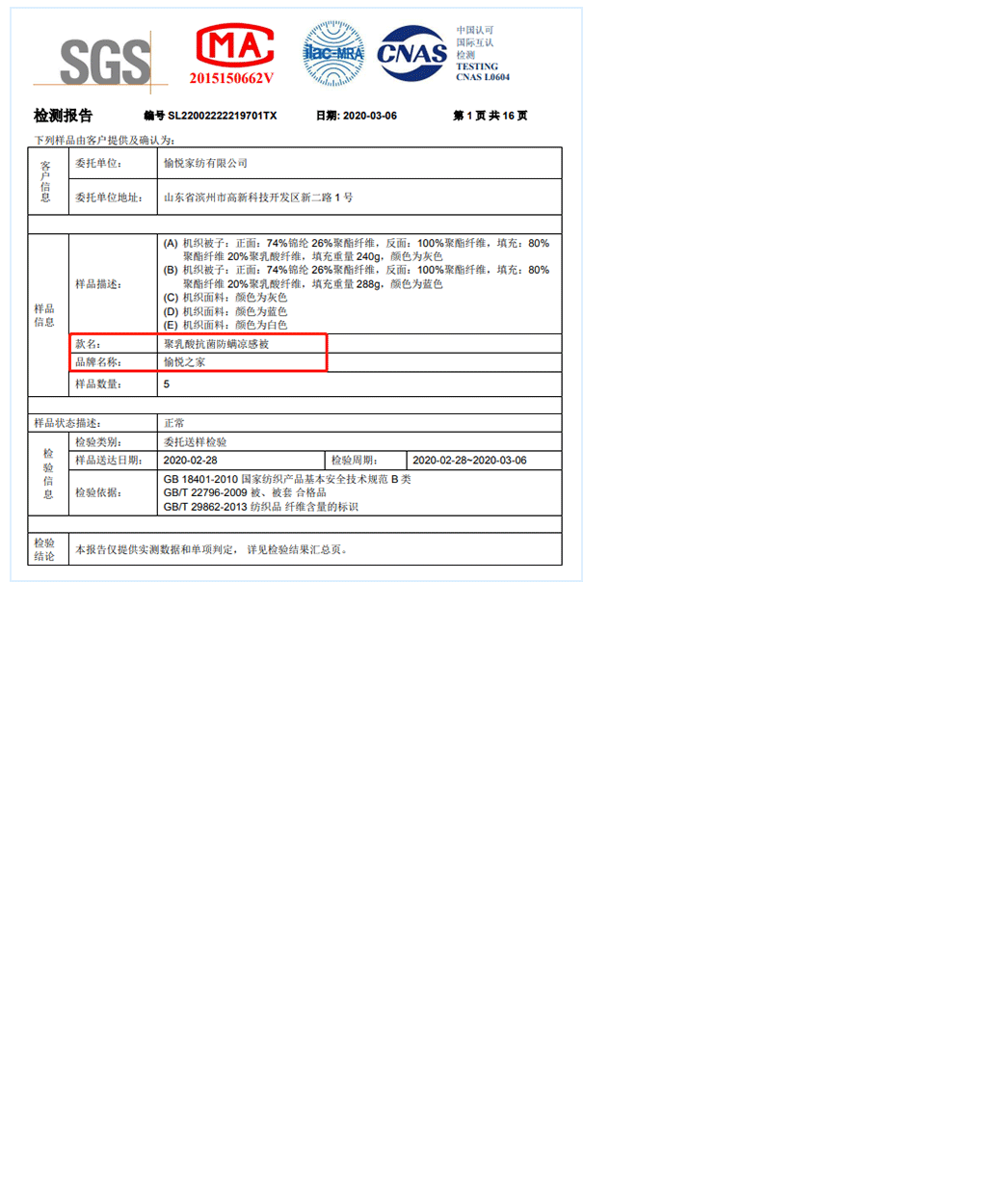 现在冒充“凉感被”的太多了,区别真假,最重要一点就是:看有没有凉感检测报告!