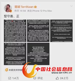 几乎就在田小姐朋友圈拉踩李靓蕾标榜自己的时候,台湾名媛关颖也站了出来,发微博力撑跟自己并不算熟悉的李靓蕾。