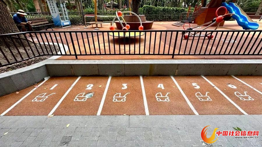 值得一提的是,乐园外还有一排“停车区”,婴儿车、平衡车、小三轮车等都能整整齐齐地停放在印有编号的格子里。户外洗手台和直饮水设施都设置了两个不同的高度,方便各年龄段孩子们使用。家长看护区、第三卫生间、自动售卖机等便民设施,则令大小游客都能享受到贴心的服务。