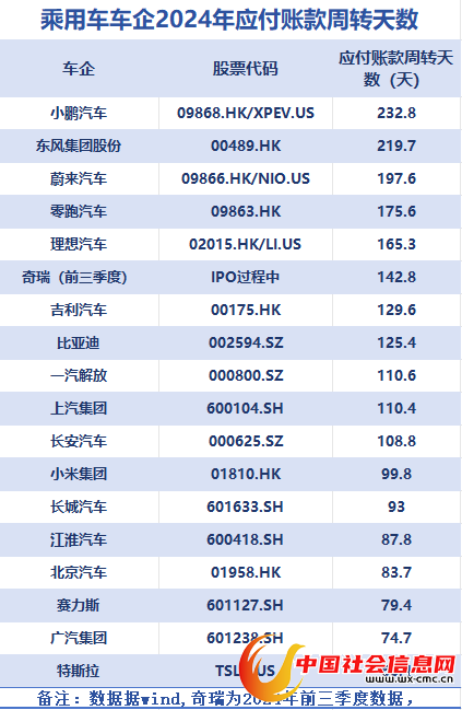 应付账款周转天数是衡量公司需要多长时间付清供应商欠款的一个指标。wind数据显示,2024年上市车企应付账款周转天数的平均值为182天。
