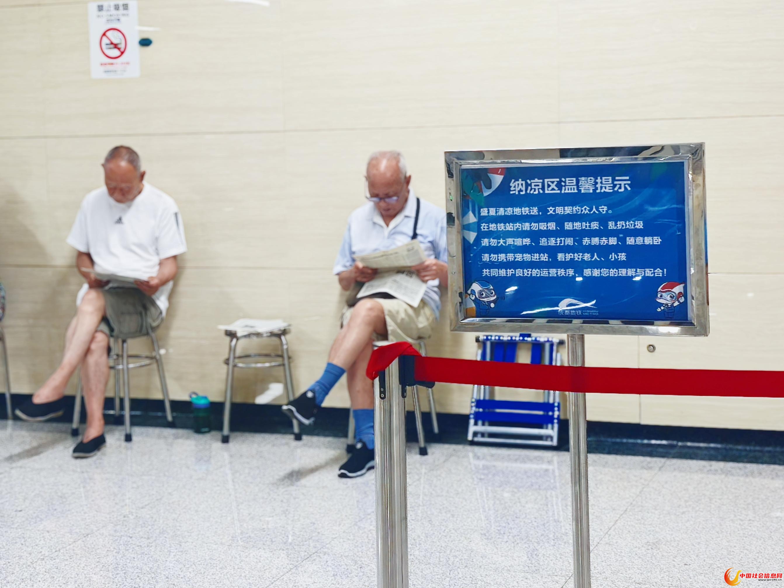 杨婆婆今年63岁,她和院子里的邻居们组成了“纳凉搭子”,每天晚饭后带着孙娃们一起前往车站纳凉,“天气太热家里呆不住,地铁站里挺凉快,也很干净。”