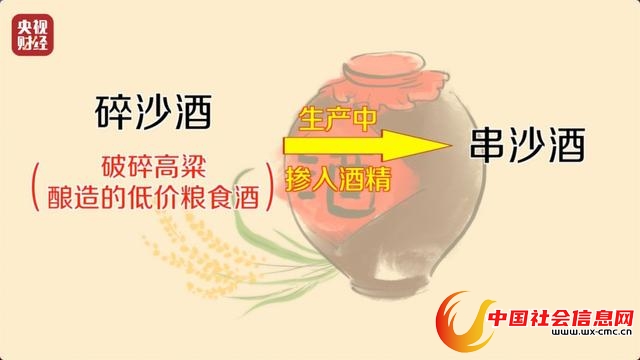 这种酒在破碎高粱酿造的低价粮食酒中掺入酒精以提高产量,看似有粮食酒特征,实则仍属酒精勾兑产品。