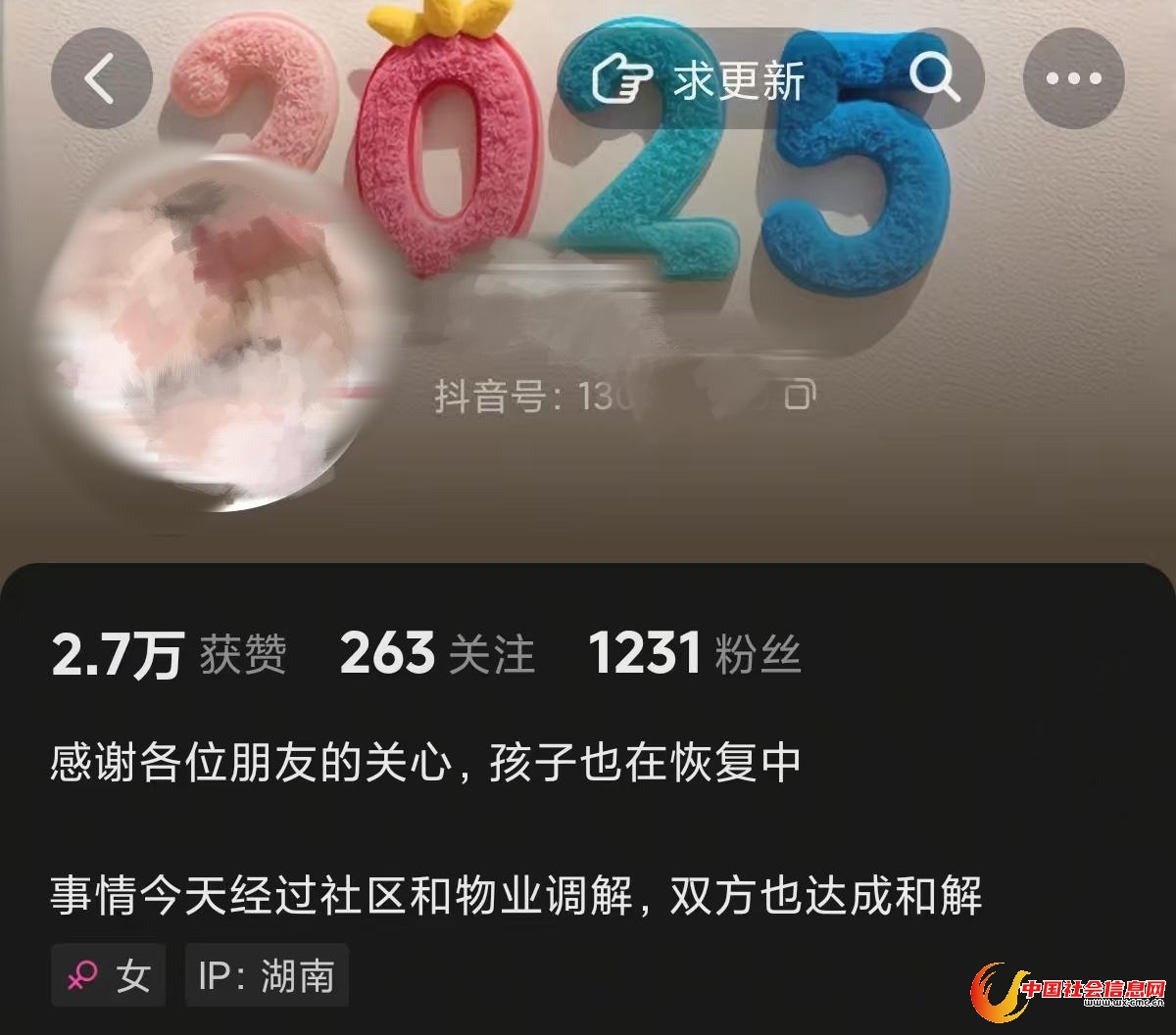 7月14日,红星新闻记者联系到发文女子,对方表示此事还在处理中。当天下午,该女子发文表示:感谢各位朋友的关心,孩子在恢复中,事情经过社区和物业调解,双方也达成和解。