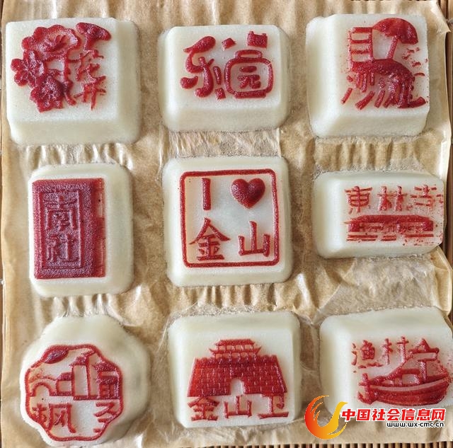 这款糕点不仅延续了金山方糕绵软香甜的传统风味,更以巧思将金山的自然风光与人文地标“烙”于糕体之上,成为兼具文化内涵与美食体验的网红产品,吸引众多市民专程前来打卡购买。