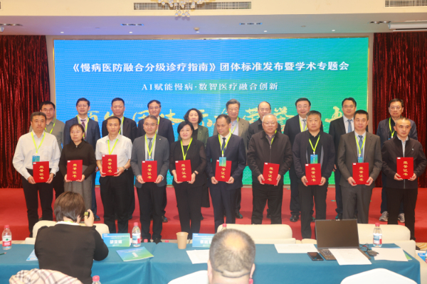 中国研究型医院学会移动医疗专业委员会名誉主委方伟岗教授中国研究型医院学会移动医疗专业委员会名誉主任委员方伟岗教授强调,标准首次实现“三个融合”:医防体系融合、中西医融合、数字化技术与临床实践融合,标志着我国慢性病防治进入标准化 2.0 时代。这不仅是基层实践经验的升华,更是我国慢病防治从经验驱动迈向标准引领的里程碑。会上,《慢病医防融合分级诊疗指南》(T/CRHA 150-2025)发布仪式正式举行。该标准由中国研究型医院学会发布,中国研究型医院学会移动医疗专业委员会提出,由国家标准化管理委员会中国标准化研究院全国团体标准信息平台正式发布,于2025年3月25日正式生效。为起草单位部分代表颁发荣誉证书大会还为部分《慢病医防融合分级诊疗指南》团体标准起草单位或起草人代表颁发荣誉证书,表彰他们在标准制定过程中的辛勤付出与卓越贡献。