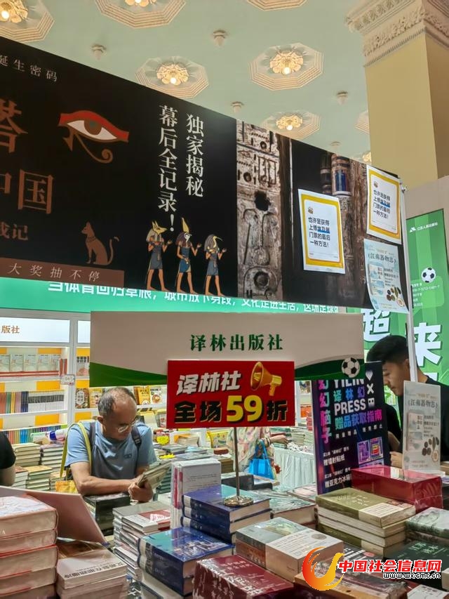 “一上午《金字塔在中国》已经卖掉一箱。”不仅员工cosplay全场种草,译林出版社展台布置也很“卷”,书籍整齐摆放成了金字塔的形状,埃及展地贴是总编辑趴在地上一点点贴出来的。买书送票的福利摆在醒目位置,吸引不少人问询。译林出版社工作人员思远介绍,从8月13日一直到17日展览结束,书展期间都会赠送当天埃及展午夜场门票,每天限量,赠完即止。“有人为了拿三张票一口气买了三本书。”