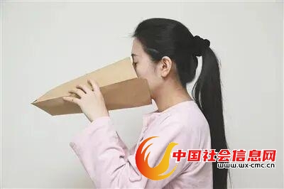 一旦出现呼吸性碱中毒的症状首先要帮助病人平静一下心情,然后使用一个纸袋或塑料袋,套住病人的嘴巴,让呼出的二氧化碳重新吸回到体内去增加二氧化碳的吸入。如果没有纸袋,可以用一张报纸,卷成一个喇叭状,大头套着嘴巴,小头向外进行回吸,就是把自己呼出的气体尽量回吸到体内。
