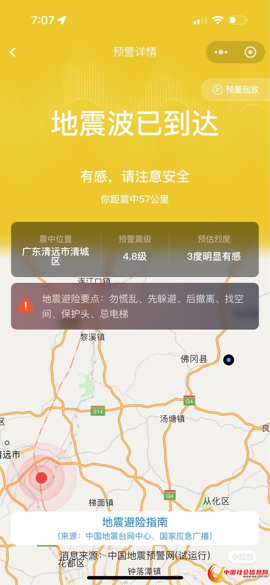 中国地震台网正式测定,6月23日18时48分在广东省清远市清城区(北纬23.62度,东经113.17度)发生4.3级地震,震源深度10千米。