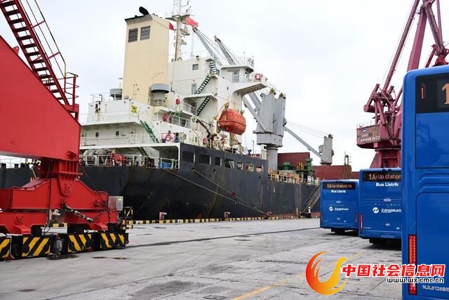 6 月25 日,“NAVI JENNY”(幸运之旅)轮正在张华浜码头进行吊装作业,该轮计划运载50辆新能源客车前往印度尼西亚雅加达港。为做好此次新能源汽车海运出口的服务保障,吴淞海事局为其量身定制安全服务保障举措。