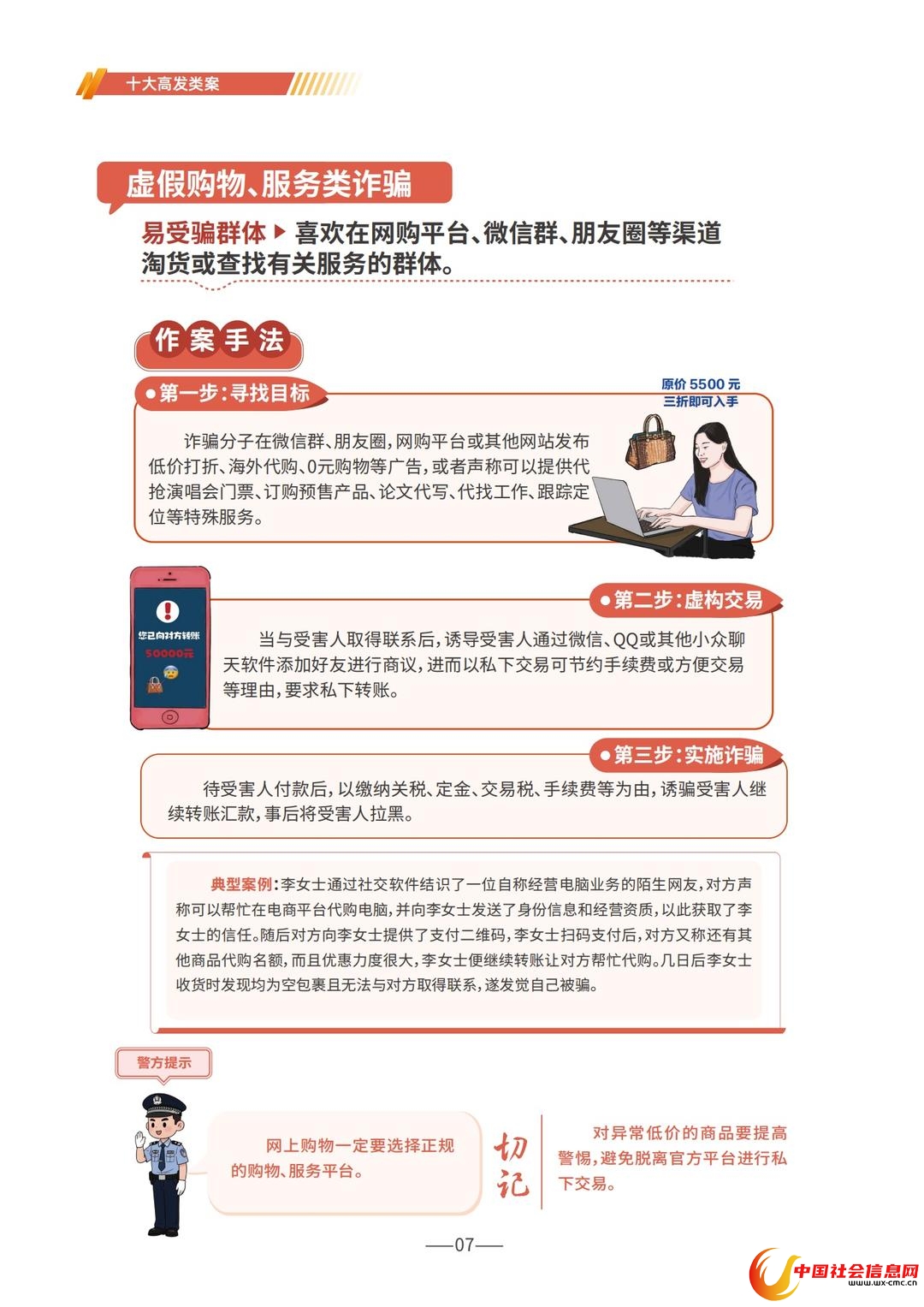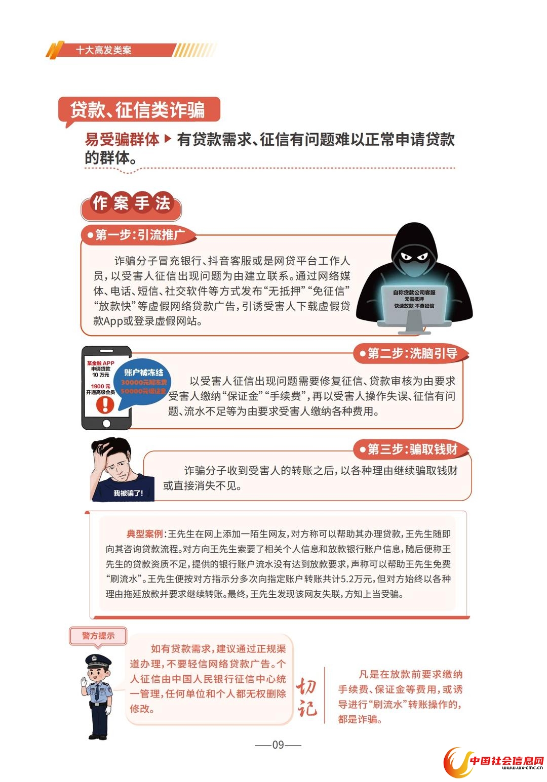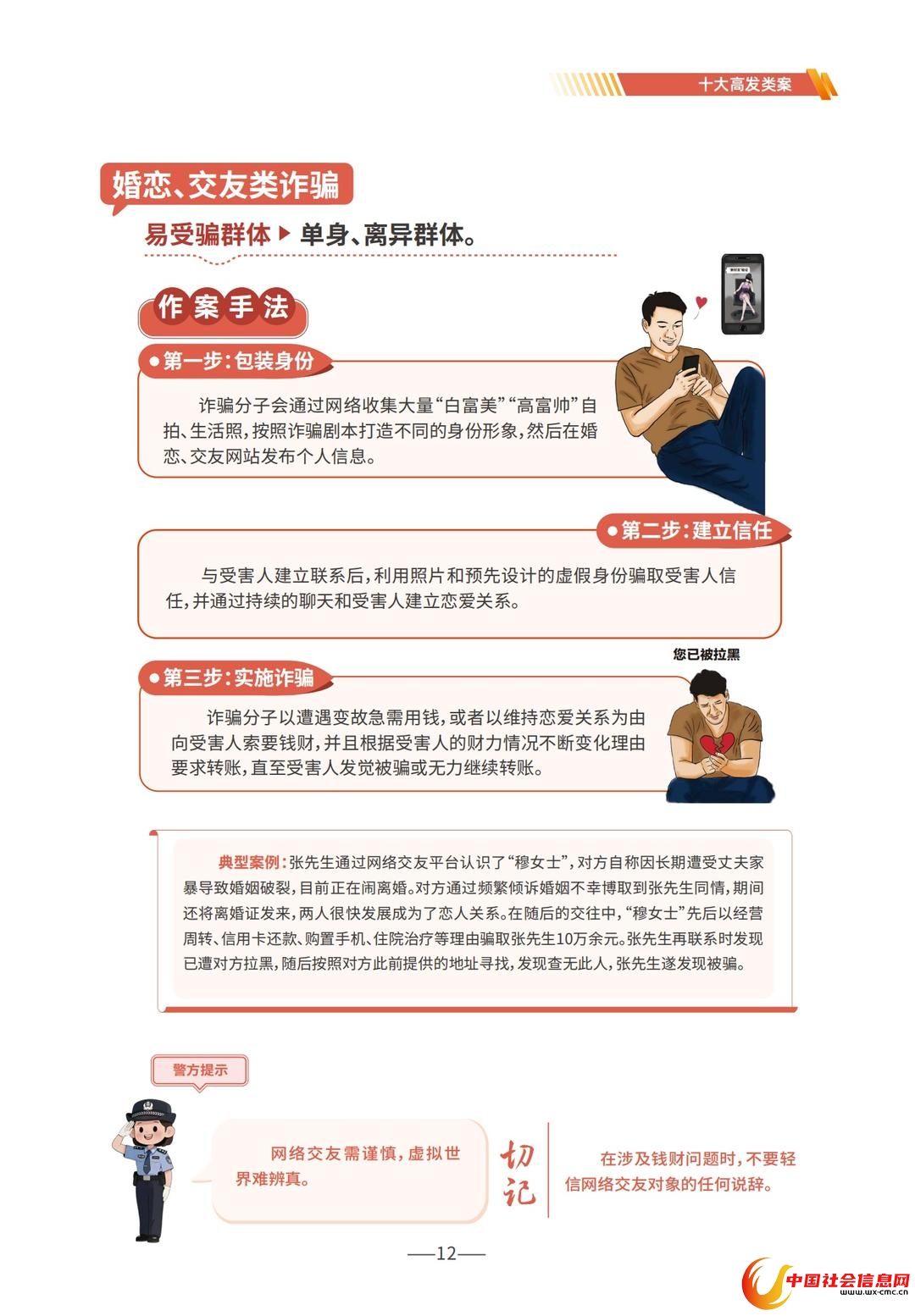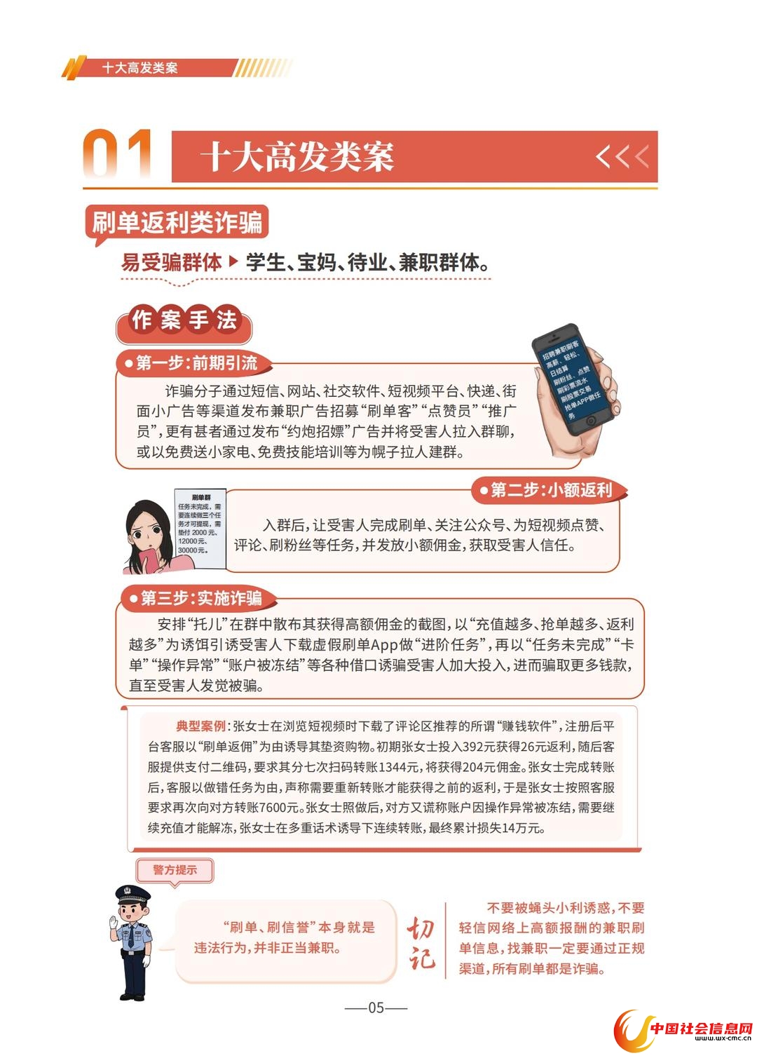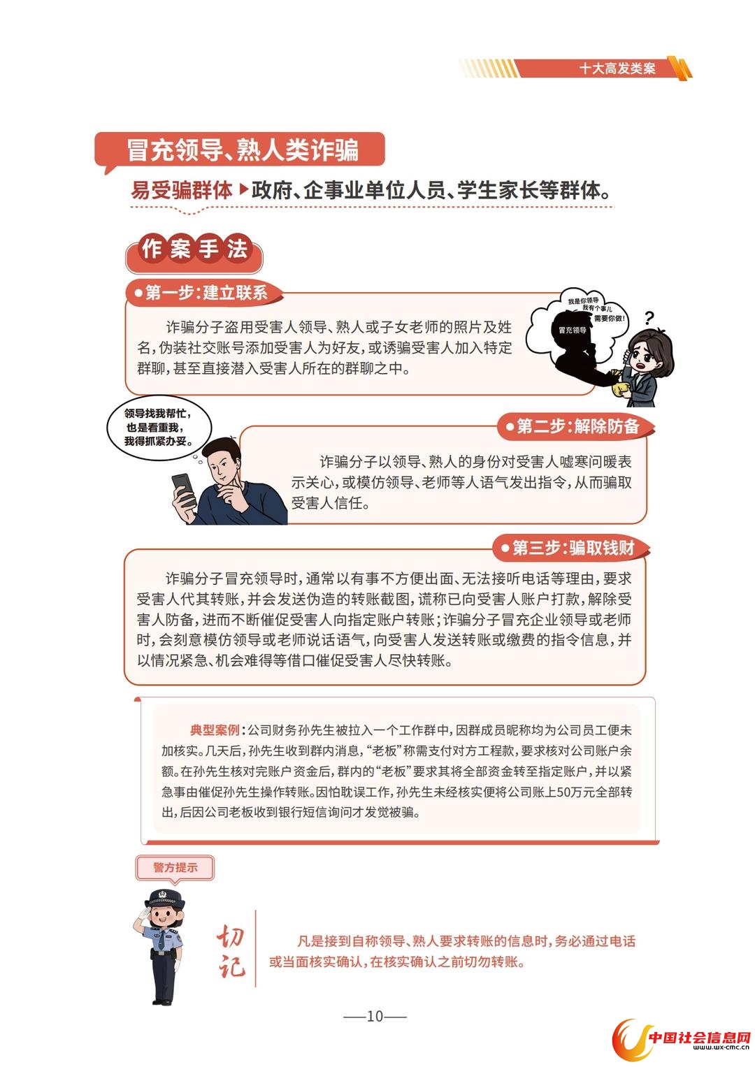 近日,公安部刑侦局最新发布《2025版防范电信网络诈骗宣传手册》,其中提示:防范网络电信诈骗,要注意十大高发类案。