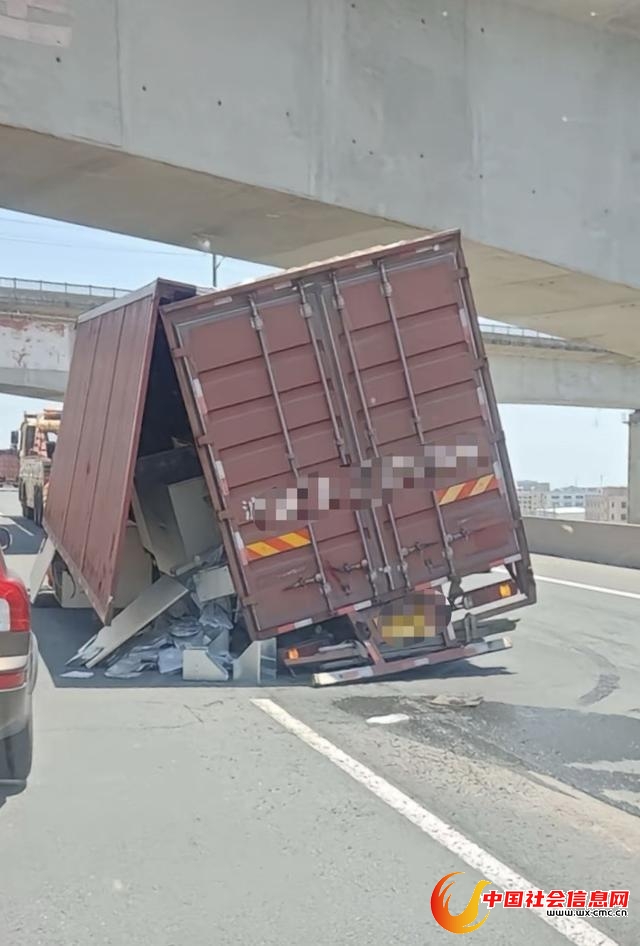 新民晚报记者了解到,当时一辆厢式货车行驶至事发路段时,货车左后轮掉落,车身向左后侧倾斜。驾驶员立即下车查看。