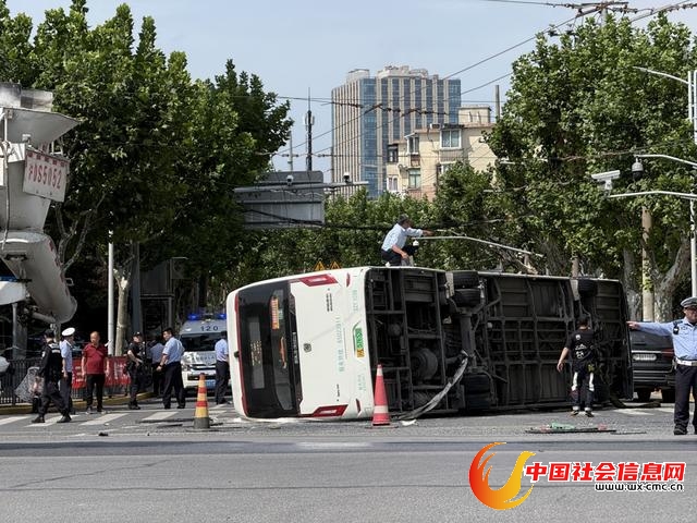 近日,杨浦区平凉路军工路T字路口,一辆25路公交车在掉头过程中,被土方车撞至侧翻,3人送医。