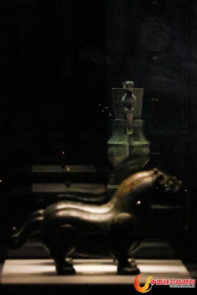 而展线末端,武王墩墓出土、追回的乐器文物重磅亮相,无论是“阜平君”铭虎形铜座,还是两组蟠虺纹编钟,都是楚国音乐文化兴盛的见证。