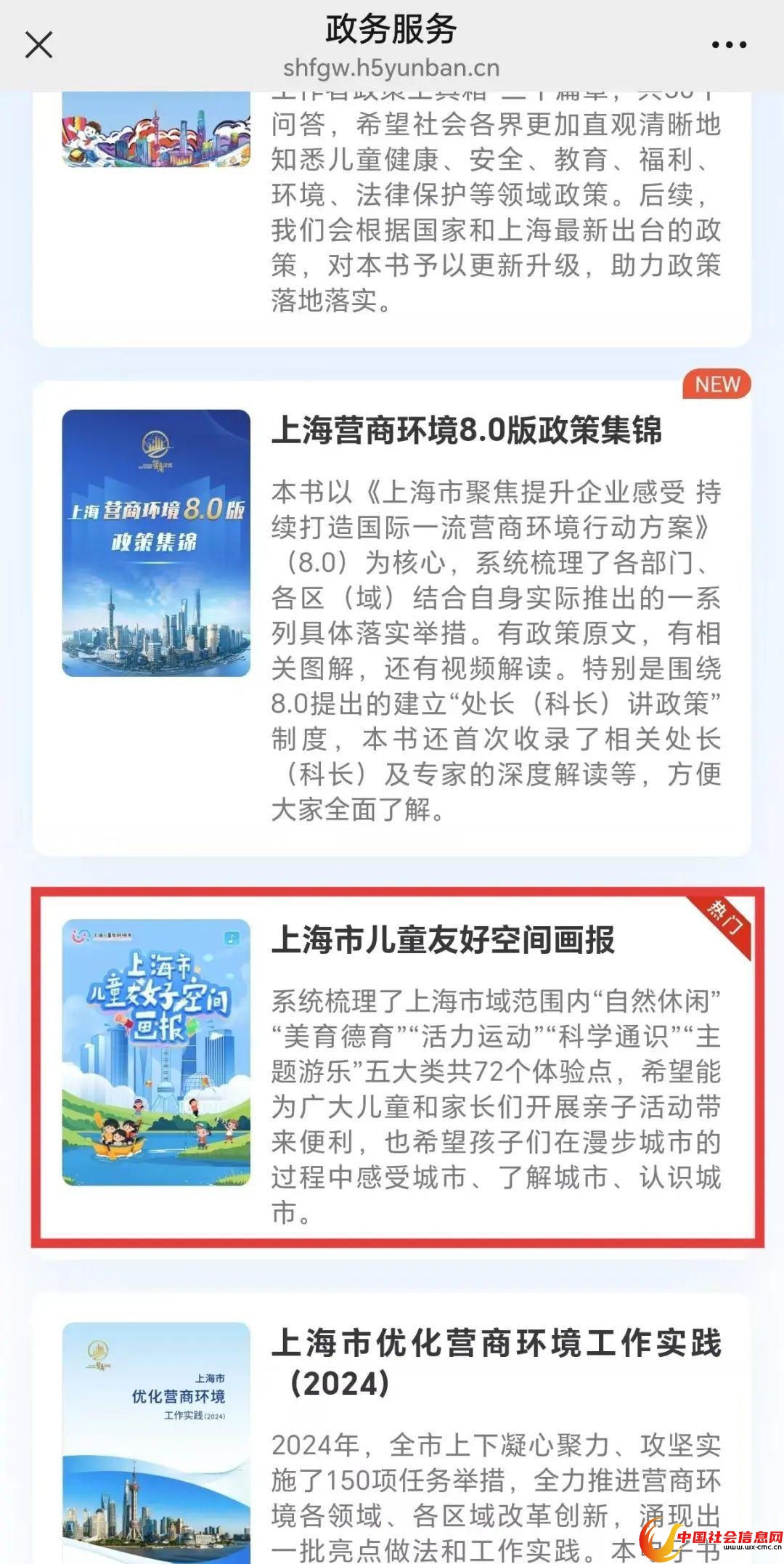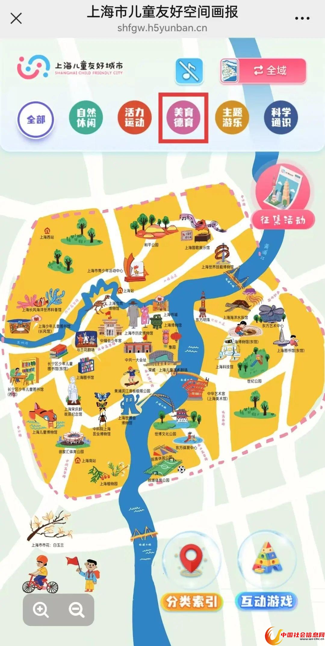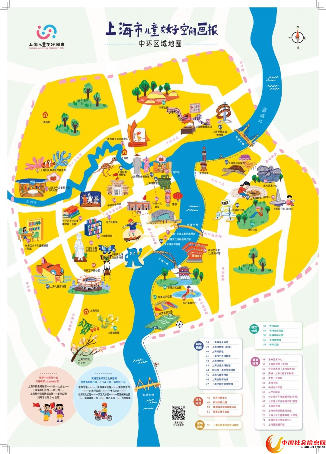 《上海市儿童友好空间画报》分为“全域”“中环区域”两张,点击地图可查看详情。