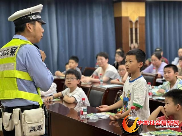 活动中,交通安全课干货满满。课上,交警根据儿童认知特点,结合日常生活场景中的高频安全风险,将交通法规、交通安全知识点教授给孩子们。如,过马路前,停在人行道时要左看右看再左看,避免被不遵守交通规范的逆行车辆冲撞;夜晚出行时,尽量不穿深色衣物,可以在手臂上绕一圈反光条,在过马路时举手,让自己更醒目;不要因为同学呼喊在马路上来回走。同时,强调了孩子与家长共同出行时的安全规范。如,坐电动车时要戴好头盔,提醒载人者不走机动车道、不逆行;提醒家长开车时不看手机、不接听电话,要主动礼让斑马线等等。