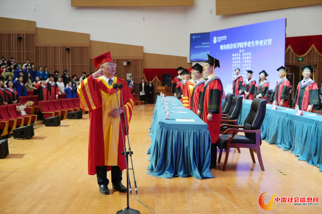 ▲关健(宣誓者)上月还曾出席毕业典礼 图据哈尔滨音乐学院网站