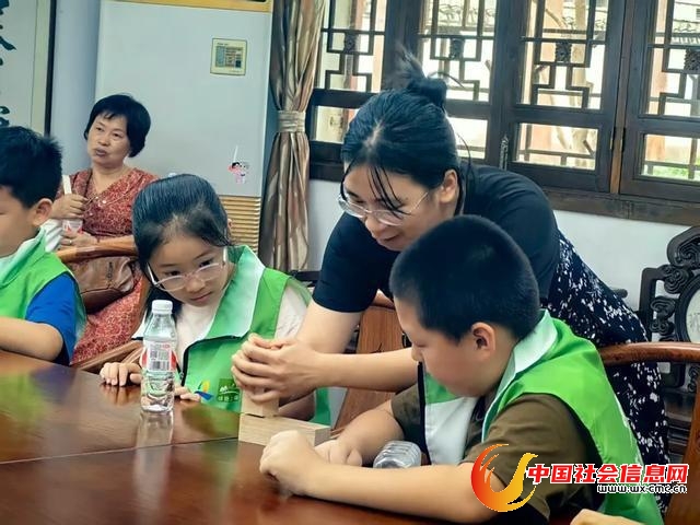 随后,黄露娜老师的讲解更是引人入胜。她不仅追溯榫卯的历史,更深入浅出地阐释了其核心原理,并结合方塔的斗拱结构,剖析了这种设计如何在千年风雨中为古塔提供无与伦比的抗震稳固之力。“榫卯不仅是构件连接方式,更是‘天人合一’哲学在建筑上的绝妙体现。”黄老师的这句话,让孩子们对传统技艺多了一份深层理解。