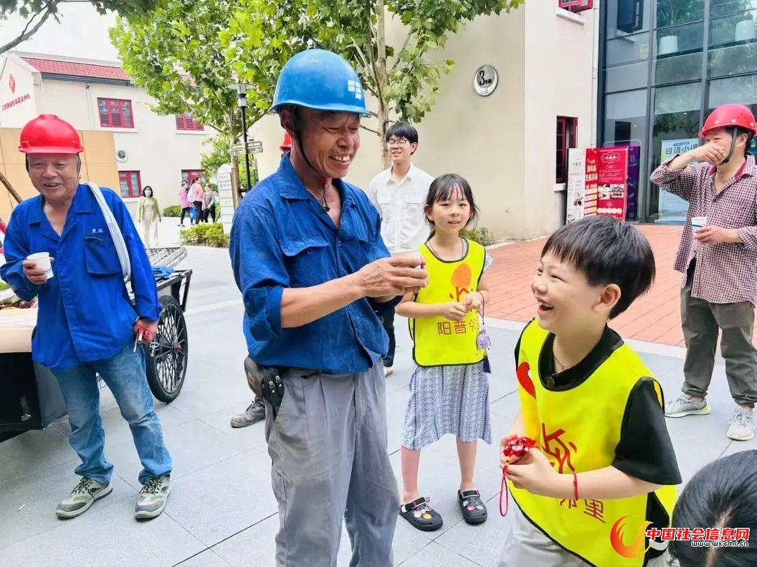 “叔叔,您辛苦了,请喝杯我们自己泡的凉茶吧!”来到建筑工地旁,孩子们将一杯杯凉茶递给了满身尘土、汗流浃背的建筑工人。一位工人师傅接过凉茶,一口气喝下半杯,“小朋友,感谢你们!这茶很甜、很香,非常好喝!”简单的语言,传递着最真挚的谢意,也让孩子们真切地体会到了“赠人玫瑰,手有余香”的快乐。