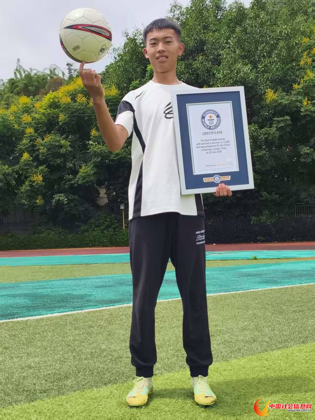 近日,吉尼斯世界纪录官网公布一项纪录——来自中国云南的19岁彝族大一学生杞涛以12086次的成绩创造了“1小时内单脚颠足球次数最多”纪录。 很难想象,外表阳光的杞涛曾因先天性心脏病两度手术,被医生反复叮嘱不能剧烈运动。从不敢跑的“病娃”到能颠球破纪录,在杞涛看来,足球的魅力不止于速度和力量,坚持和创意同样能绽放光芒。他希望更多人感受到运动的劲儿,“我是被体育‘救’过的人,‘动起来’的力量很珍贵。”