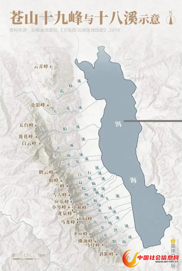 苍山十九峰与十八溪示意图。来源 公众号“大理苍山世界地质公园”