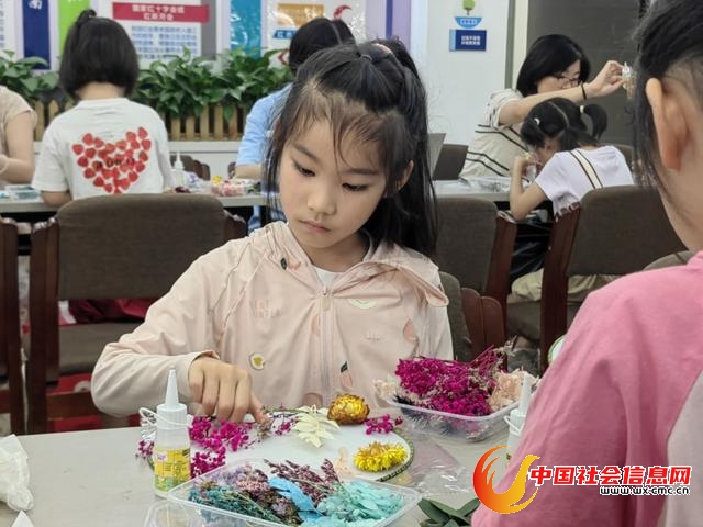 在国风团扇DIY环节,亲子家庭共同设计构图,将一朵朵干花细心点缀于素面团扇之上。在沉浸式创作中,小读者们深刻体会到了“乞巧”的内涵,感受着传统艺术的精致与美。纨扇轻摇,花香沁人,更是承载了亲子之间的默契与情感交流。