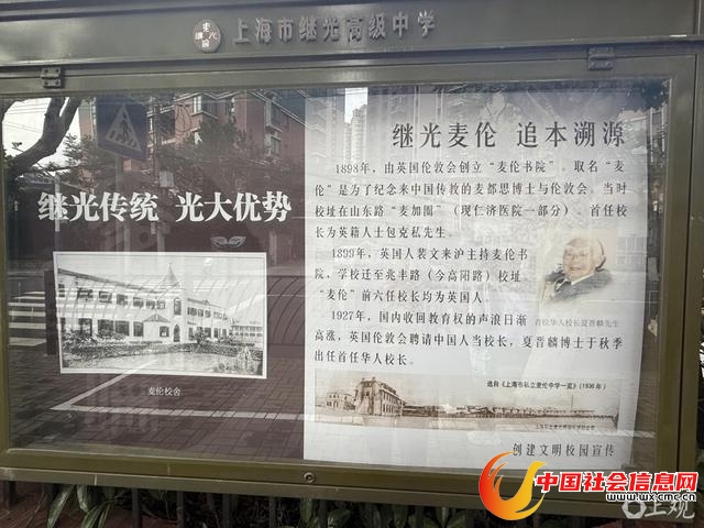 继光高级中学宣传橱窗里对麦伦中学校史的介绍。施晨露摄