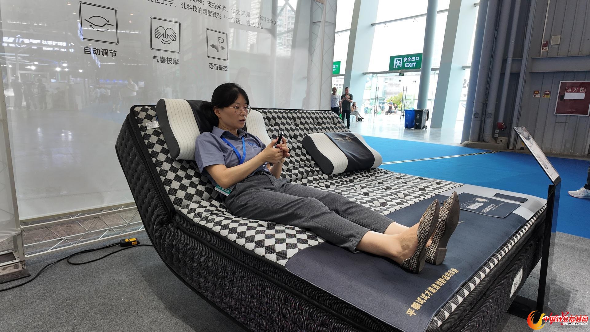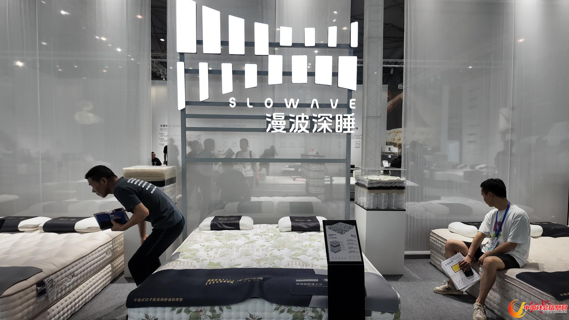 迈进展馆,只见“成都造”智能床垫品牌漫波深睡的展台吸引了大量观众驻足体验。