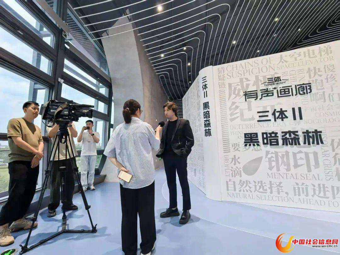 步入场馆,首先来到的是和“三体”ip全球独家版权方三体宇宙合作打造的沉浸式互动娱乐体验空间——“三体·未来学院”,扑面而来的未来感仿佛置身于浩瀚星际。“整个场馆就是科技感很强,一走进来这种光影的效果和声效,乘坐电梯的时候也是感觉一下子走进了时空隧道,非常沉浸其中。”上海人民广播电台记者赵颖文说道。