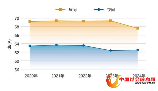 2020年至2024年上海市道路交通声变化趋势。