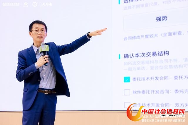 现场还集中展示了多款应用成熟的法律科技产品。比如法天使(上海)科技有限公司,就盯着“合同”这一件事。“合同中承载了大量商业信息,备受法律人关注。我们在这一领域深耕10多年,积累了超过43万家行业用户。”该公司执行董事常金光介绍,他们的产品基于约3000类交易场景的上万个优质合同模板及上百万字审查规则,独创了专业的解决方案,可以高效地完成合同的生成和审查。